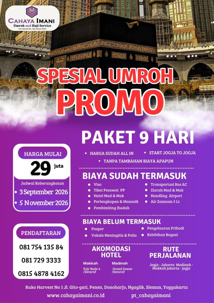 Mulai mendaftar sampai perjalanan Umroh saya sangat dipermudah oleh Cahaya Imani. Terima kasih atas layanan terbaiknya.